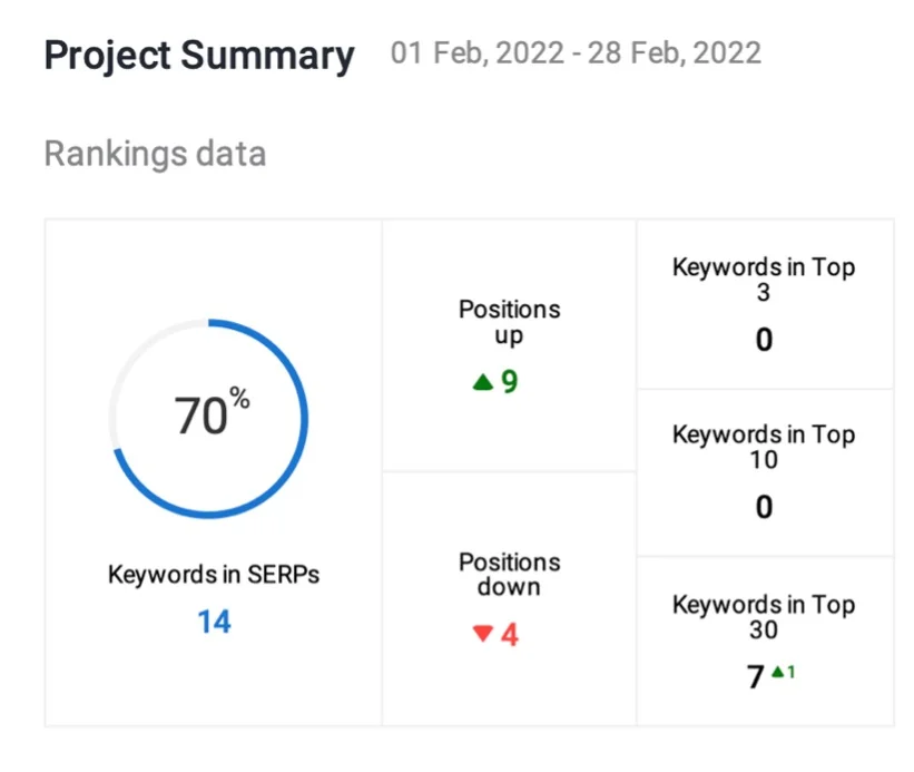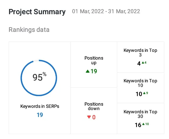We moved 4 keywords into the top 3 positions, having 0 keywords in the top 3 before starting the SEO work.